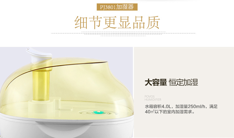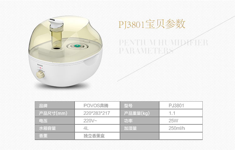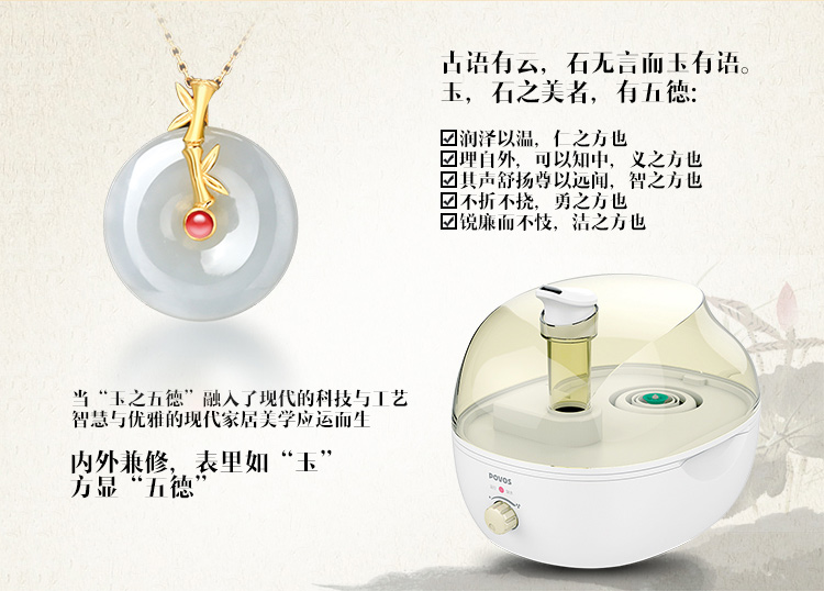 商品名称:奔腾(POVOS)PJ3801和田玉静音加湿器香薰净化型