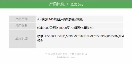 商品名称:艾洁 LT401 粉盒+硒鼓套装加黑版 适用联想LJ4000D LJ4000DN LJ5000DN M8650DN M8950DN打印机