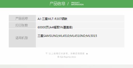 商品名称:艾洁 MLT R307 硒鼓架 适用三星MLT R307 感光鼓 ML4512 4510N硒鼓 5015打印机