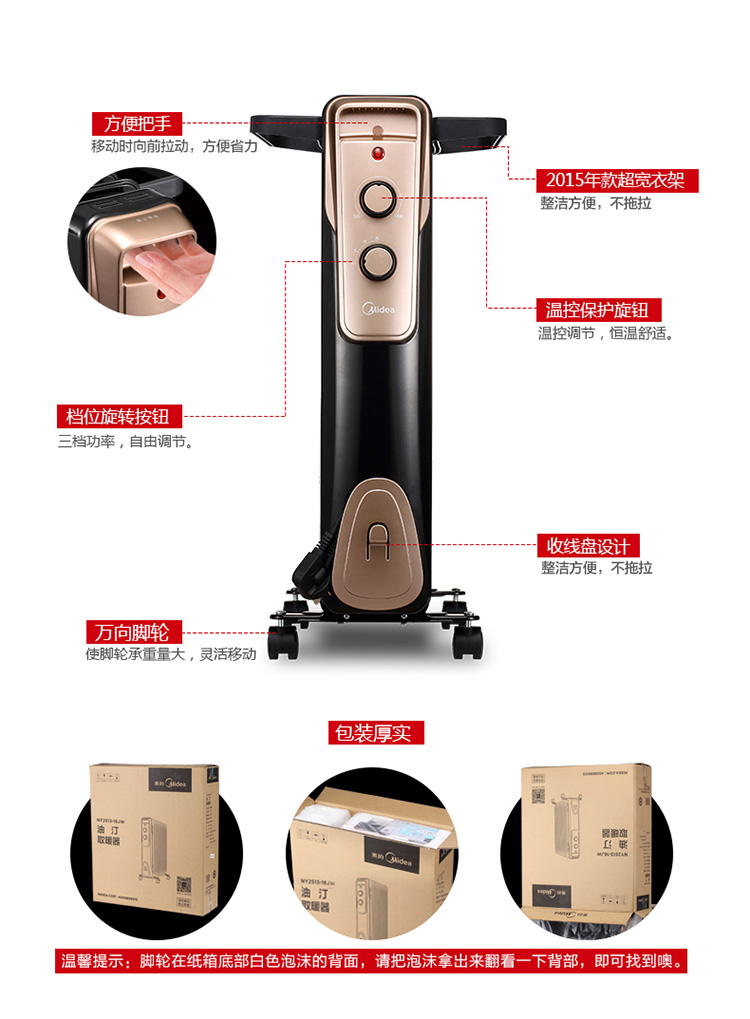 商品名称:美的(Midea)NY2011-16JW 11片新品电热油汀取暖器/电暖器/电暖气