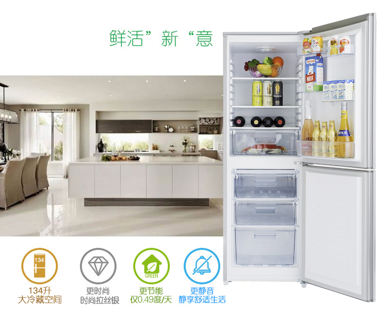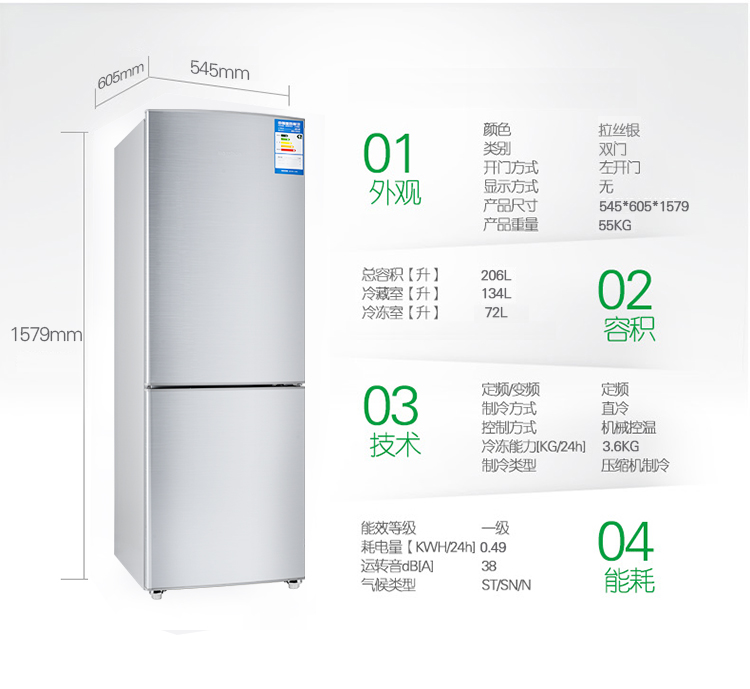 商品名称:容声(Ronshen)BCD-206D11D 206升 双门冰箱(拉丝银)