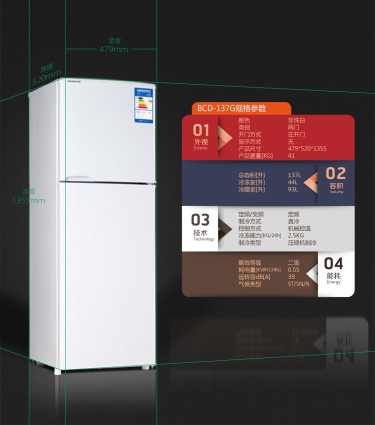 容声 (Ronshen) BCD-137G 137升 双门冰箱 (珍珠白)