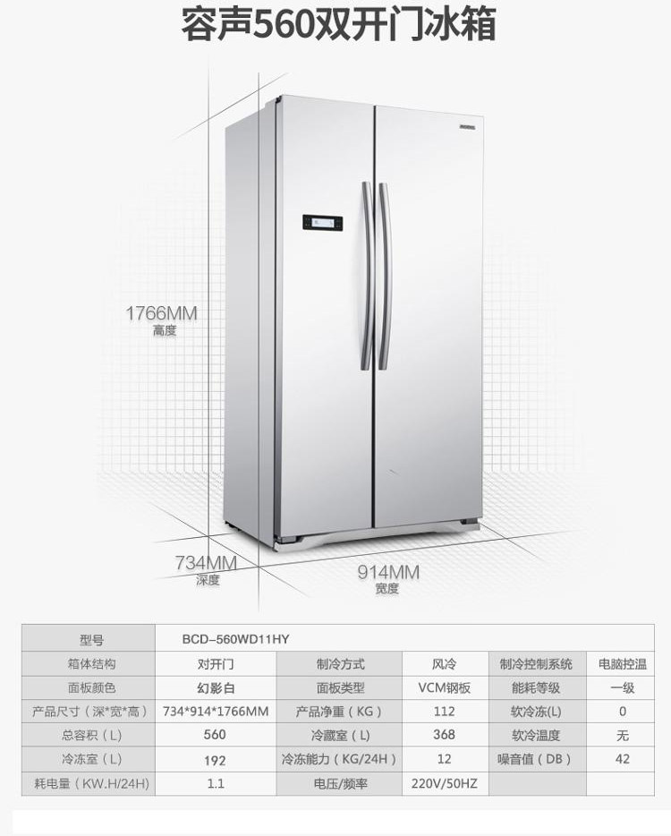商品名称:容声(Ronshen)BCD-560WD11HY 560升 风冷无霜对开门冰箱
