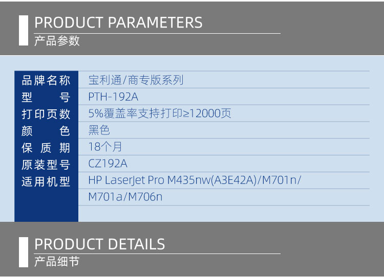 - 商品名称:宝利通(商专版系列)PTH-192A 硒鼓 适用HP LaserJet Pro M435nw(A3E42A)/M701n/M701a/M706n