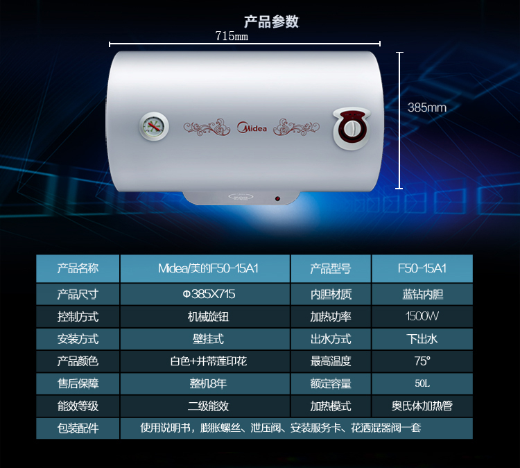 商品名称:美的(Midea) F50-15A1 50升 电热水器