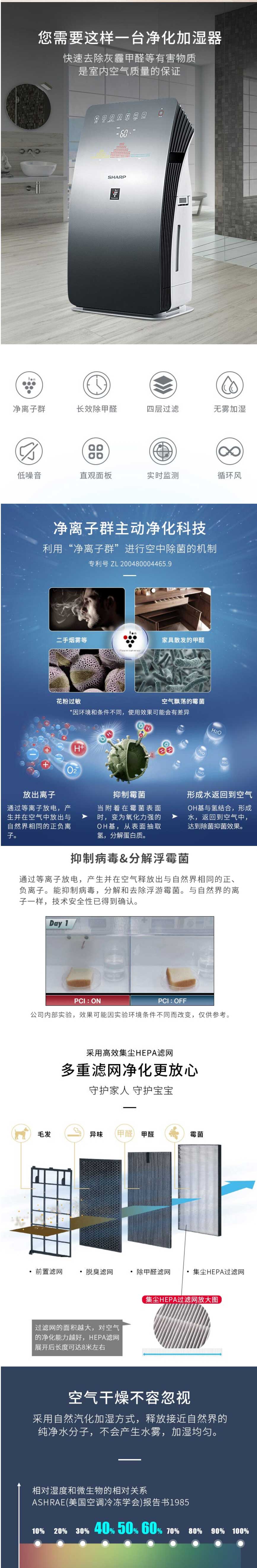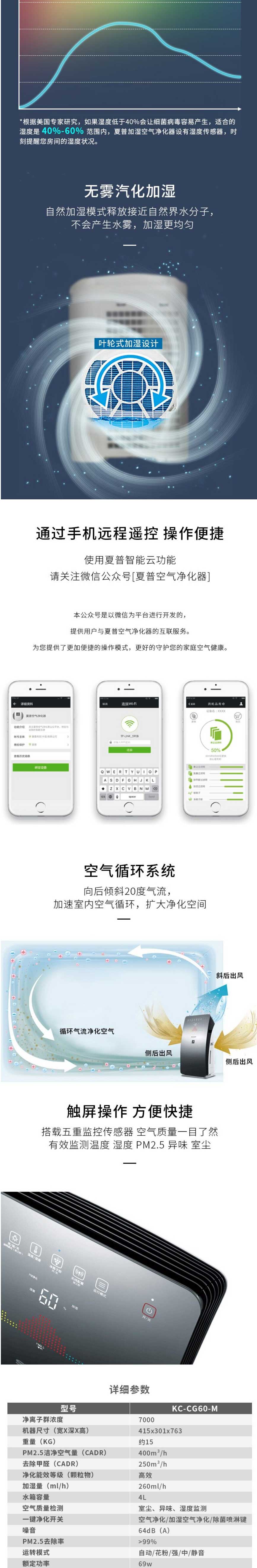 - 商品名称:夏普SHARP KC-CG60-M 除甲醛PM2.5雾霾智能互联空气净化器