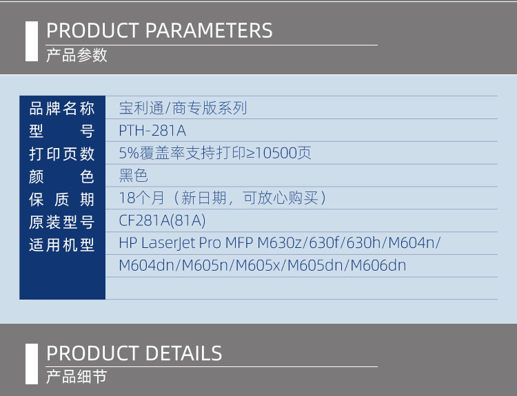 - 商品名称:宝利通(商专版系列)PTH-281A 硒鼓 适用HP LaserJet Pro MFP M630z/630f/630h/M604n/M604dn/M605n/M605x/M605dn/M606dn