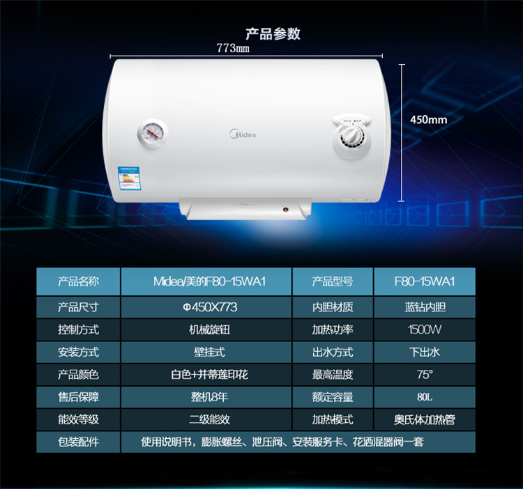 商品名称:美的(Midea)F80-15WA1 80升 电热水器