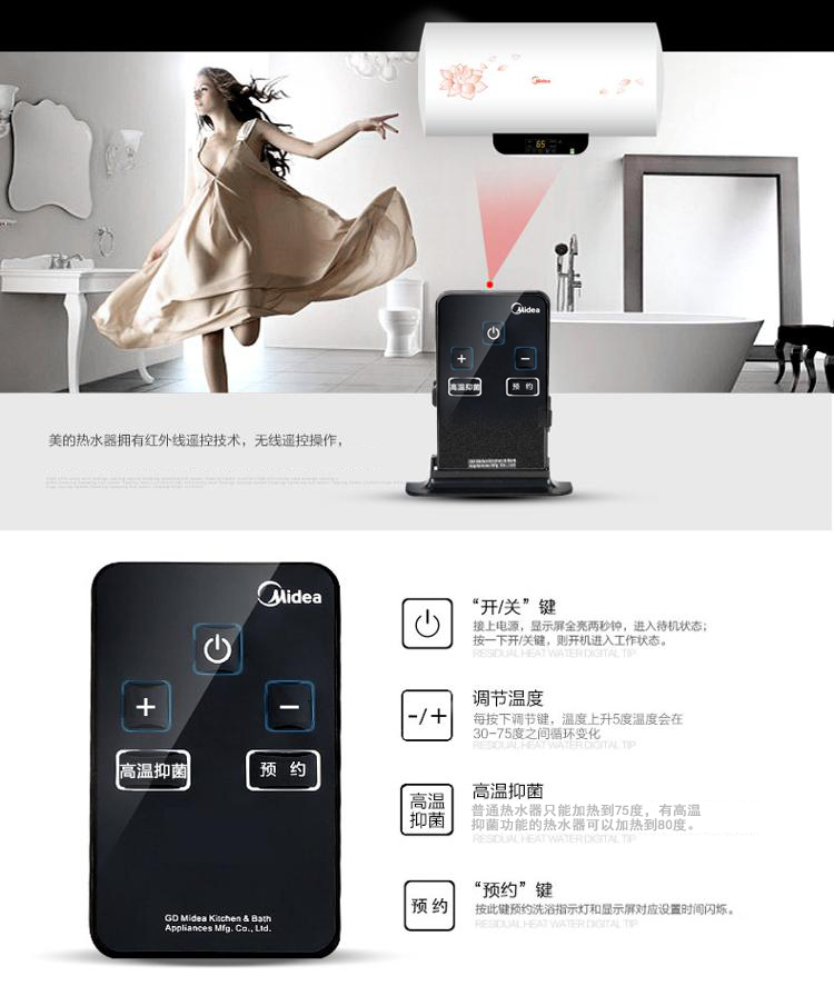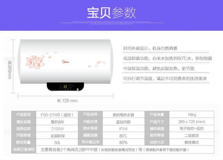 商品名称:美的(Midea)F50-21W6(B) (遥控)(雅致) 50升 电热水器