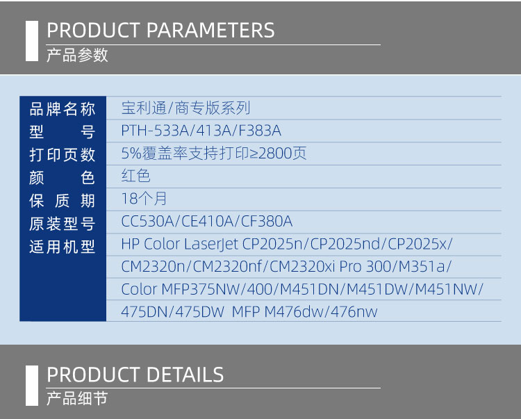 - 商品名称:宝利通(商专版系列)PTH-533A/413A/F383A 硒鼓 适用HP Color LaserJet CP2025n/CP2025nd/CP2025x/CM2320n/CM2320nf/CM2320xi Pro 300/M351a/Color MFP375NW/400/M451DN/M451DW/M451NW/475DN/475DW MFP M476dw/476nw