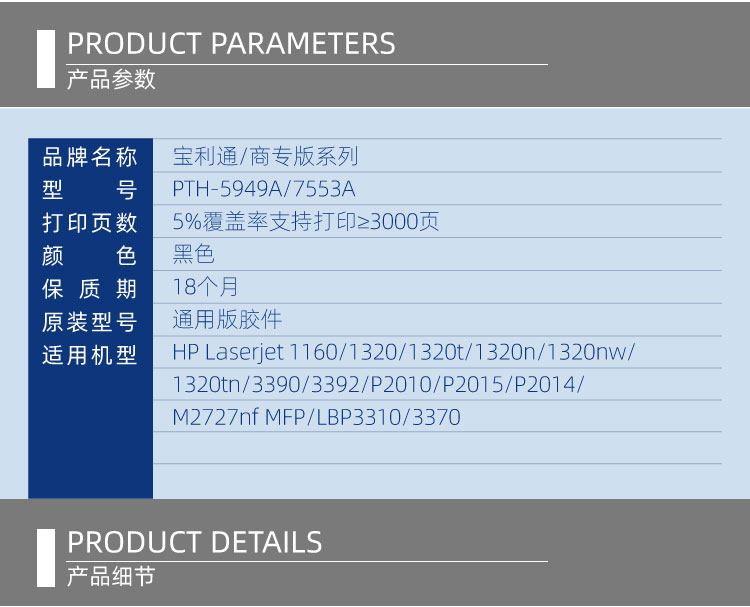 - 商品名称:宝利通(商专版系列)PTH-5949A/7553A 硒鼓 适用HP Laserjet 1160/1320/1320t/1320n/1320nw/1320tn/3390/3392/P2010/P2015/P2014/M2727nf MFP/LBP3310/3370