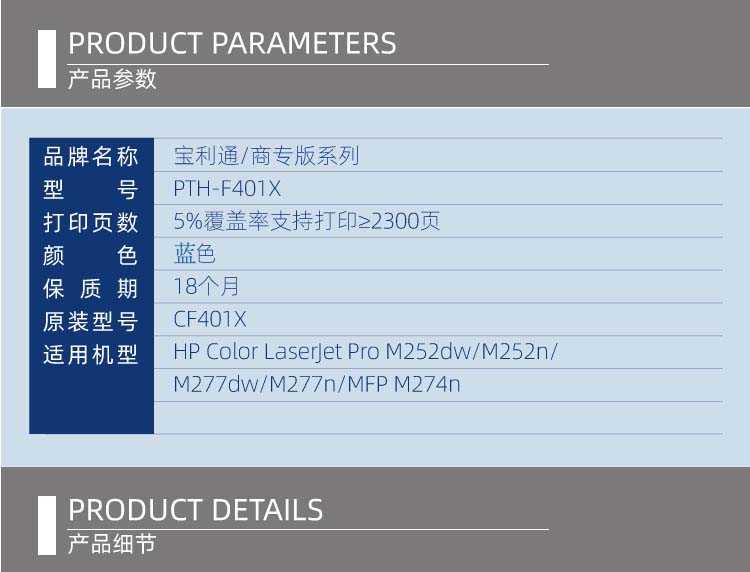 - 商品名称:宝利通(商专版系列)PTH-F401X 硒鼓 适用HP Color LaserJet Pro M252dw/M252n/M277dw/M277n/MFP M274n