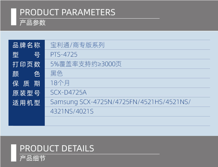 - 商品名称:宝利通(商专版系列)PTS-4725 硒鼓 适用Samsung SCX-4725N/4725FN/4521HS/4521NS/4321NS/4021S