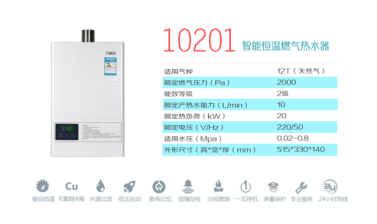 商品名称:万家乐 JSQ20-10201 10升 燃气热水器