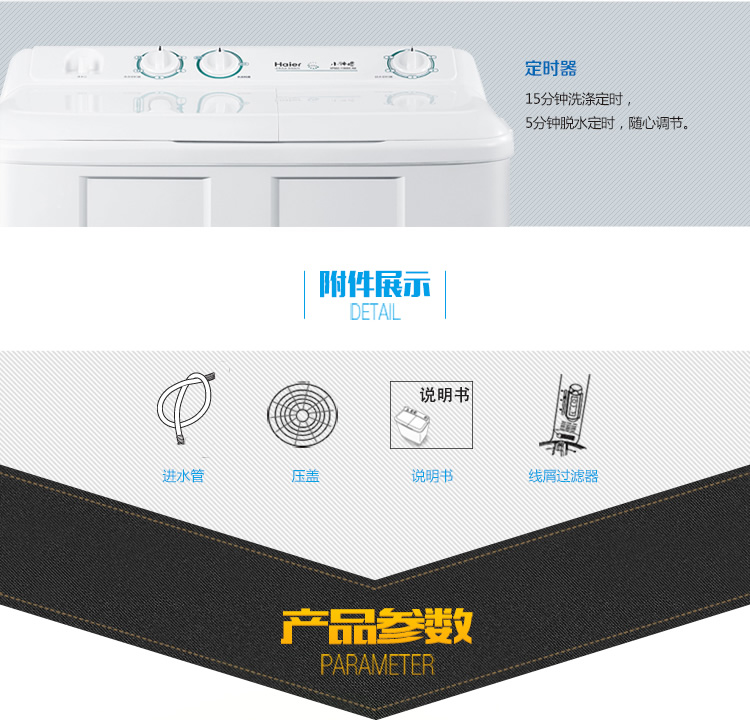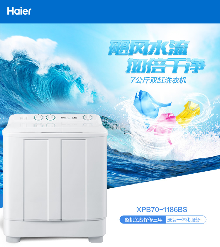 商品名称:海尔(Haier)XPB70-1186BS 7公斤 强力洗涤 双桶双缸洗衣机