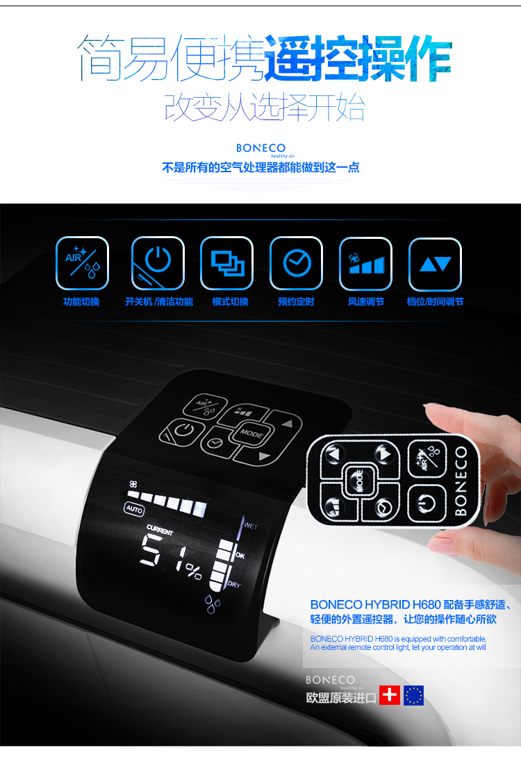 商品名称:博瑞客(BONECO)H680加湿净化二合一 空气净化器 原装进口