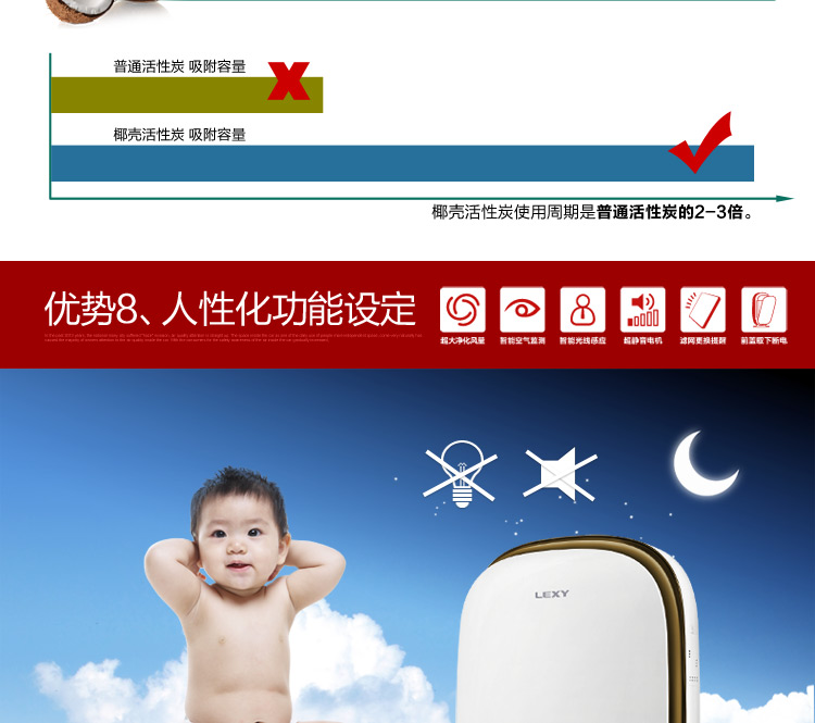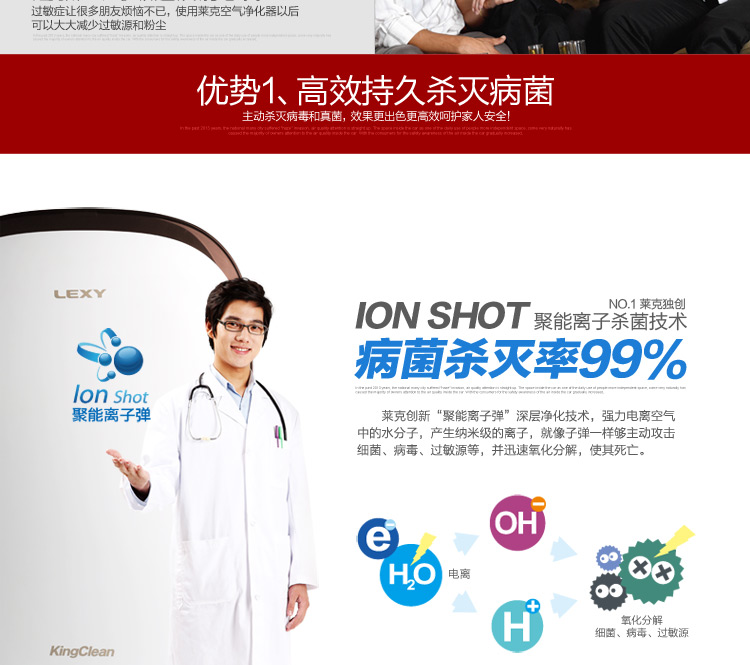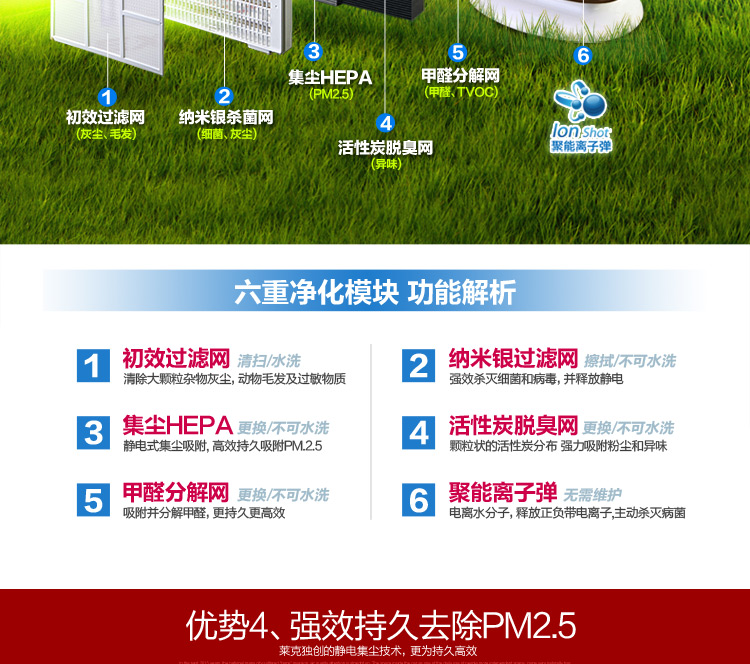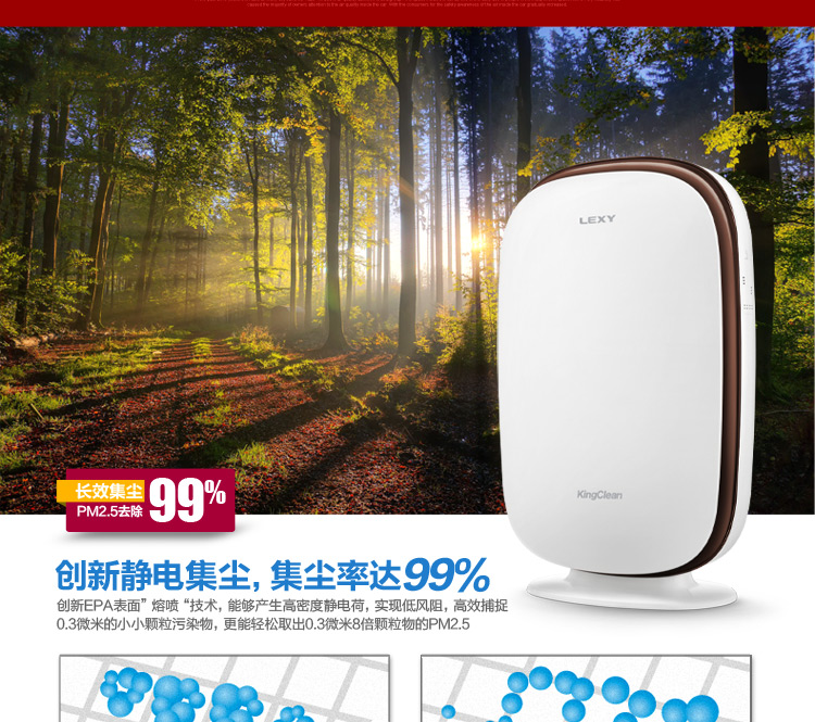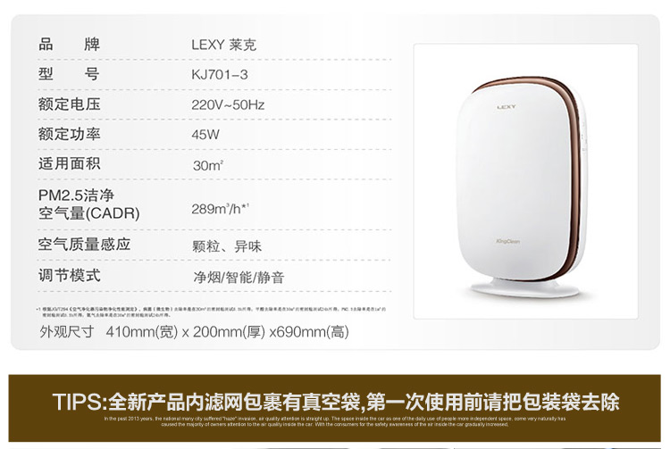 商品名称:莱克(LEXY)家用KJ701-3离子杀菌大洁净空气量除甲醛空气净化器