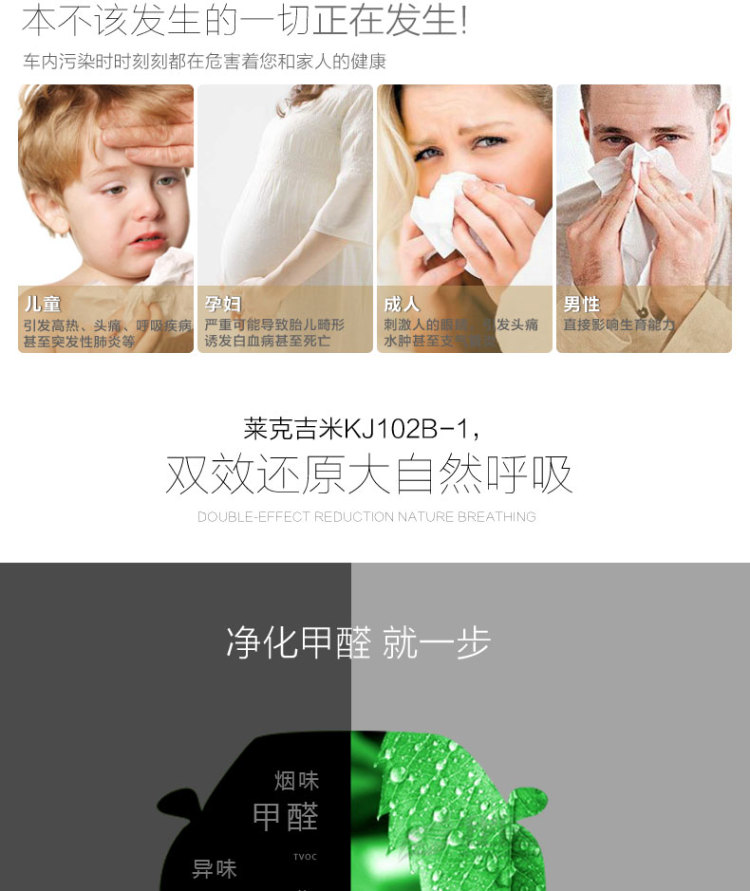 商品名称:莱克 KJ102B-1 汽车车载空气净化器迷你小型车用负离子除甲醛异味净烟味香薰