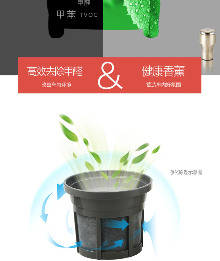 莱克 KJ102B-1 汽车车载空气净化器迷你小型车用负离子除甲醛异味净烟味香薰