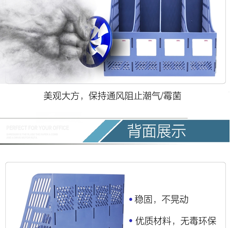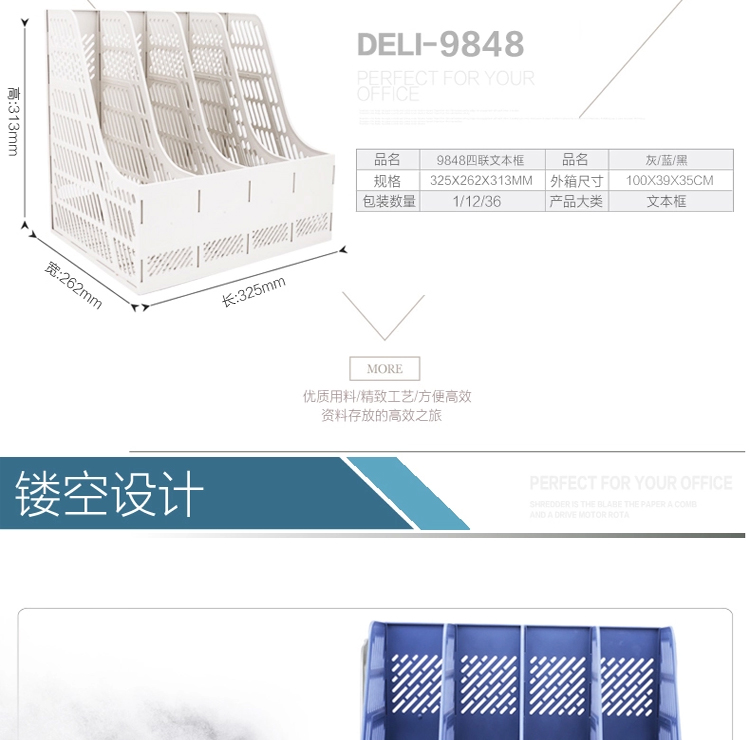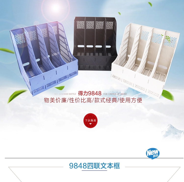 商品名称:得力(deli)9848 办公桌面用品塑料文件框四联A4