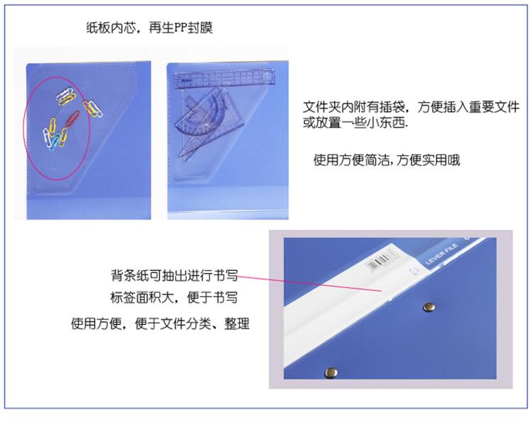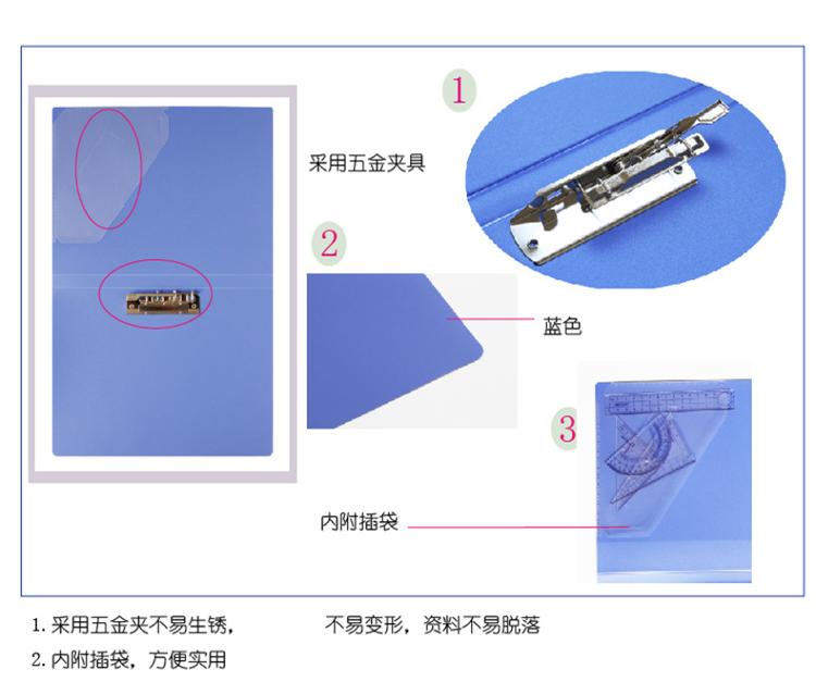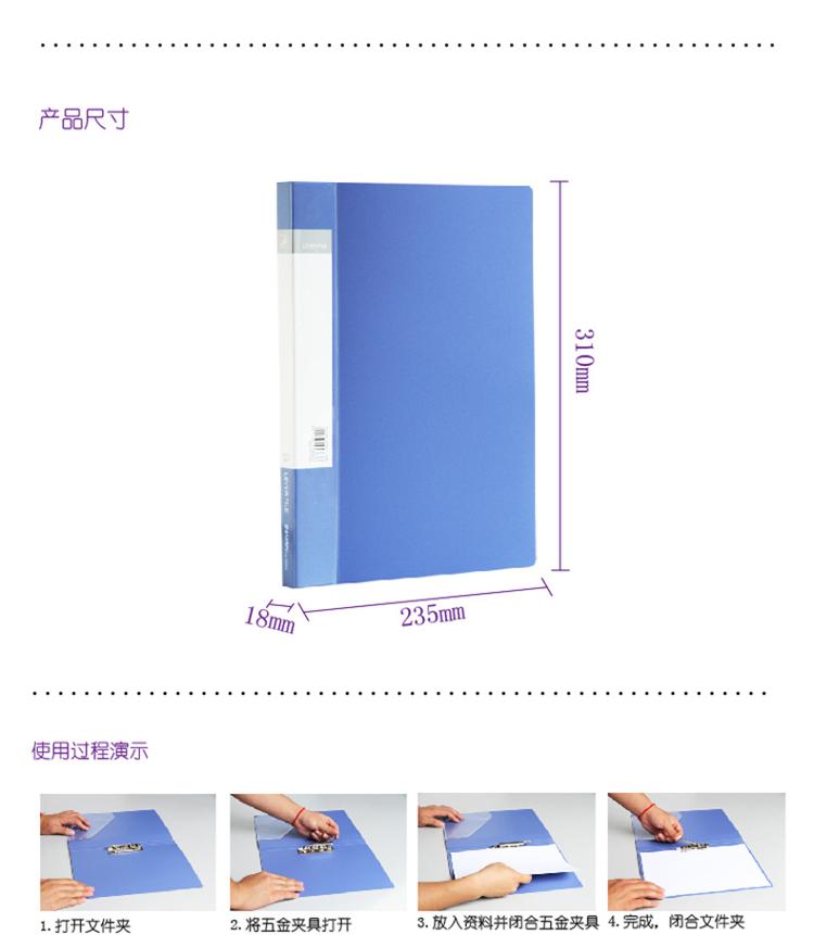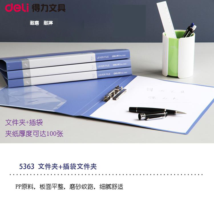 商品名称:得力(deli) 5363 ABA系列A4单强力夹+插袋文件夹 蓝色