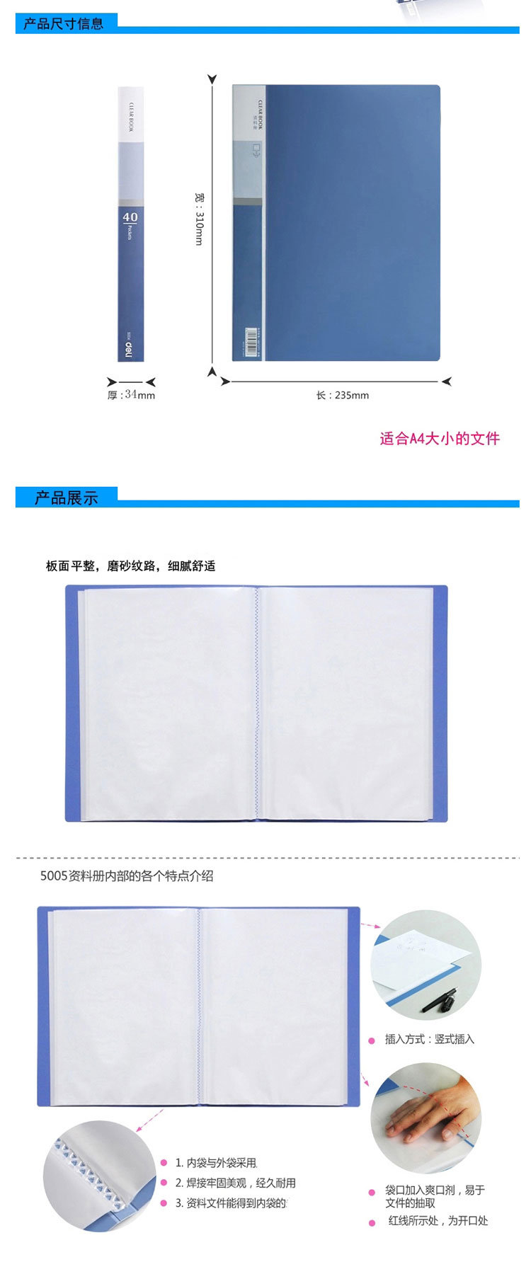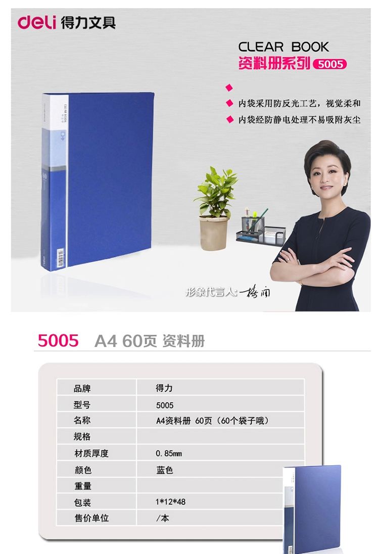 - 商品名称:得力(deli)5005 A4/60页资料册 蓝色 单只装