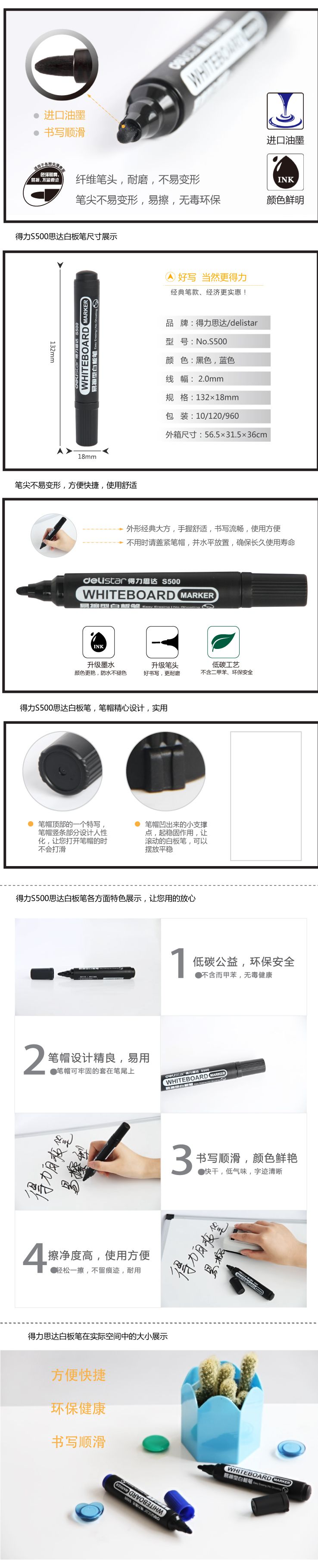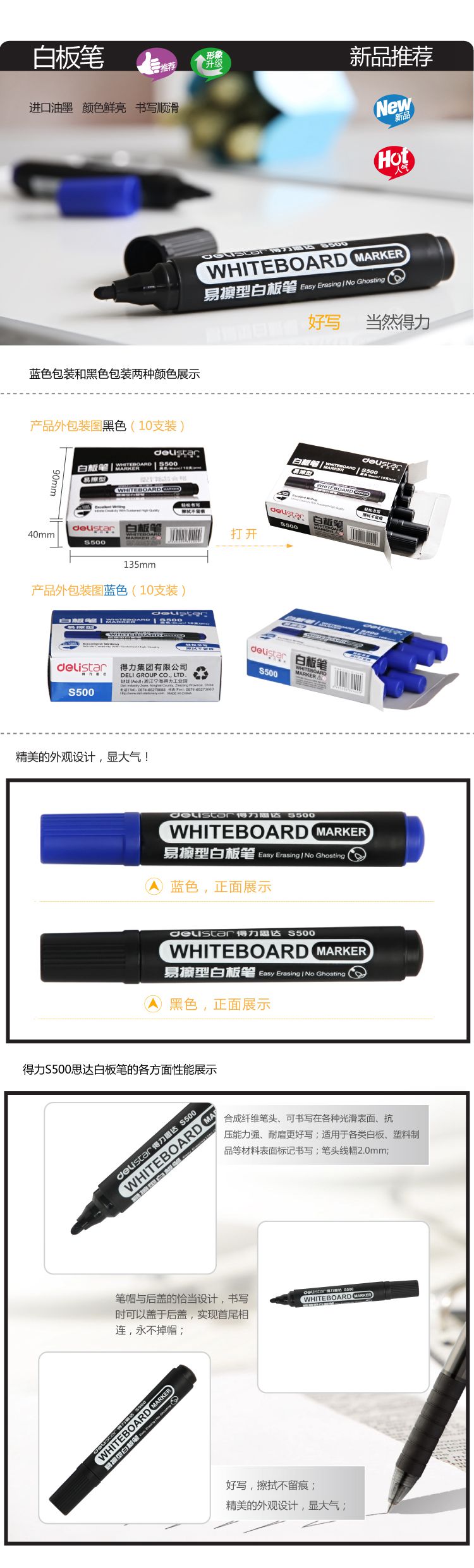 - 商品名称:得力(deli)S500 高品质纤维笔头白板笔