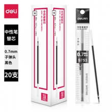 得力(deli)S753 0.7mm黑色子弹头中性笔笔芯 水笔签字笔替芯 20支/盒