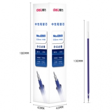 得力(deli)6901 0.5mm蓝色半针管中性笔笔芯 签字笔替芯 20支/盒