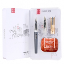 英雄(HERO)738 磨砂黑色自信都市铱金钢笔墨水礼盒套装