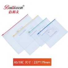 百利文 B-F54/18C 双色透明拉链袋 A5