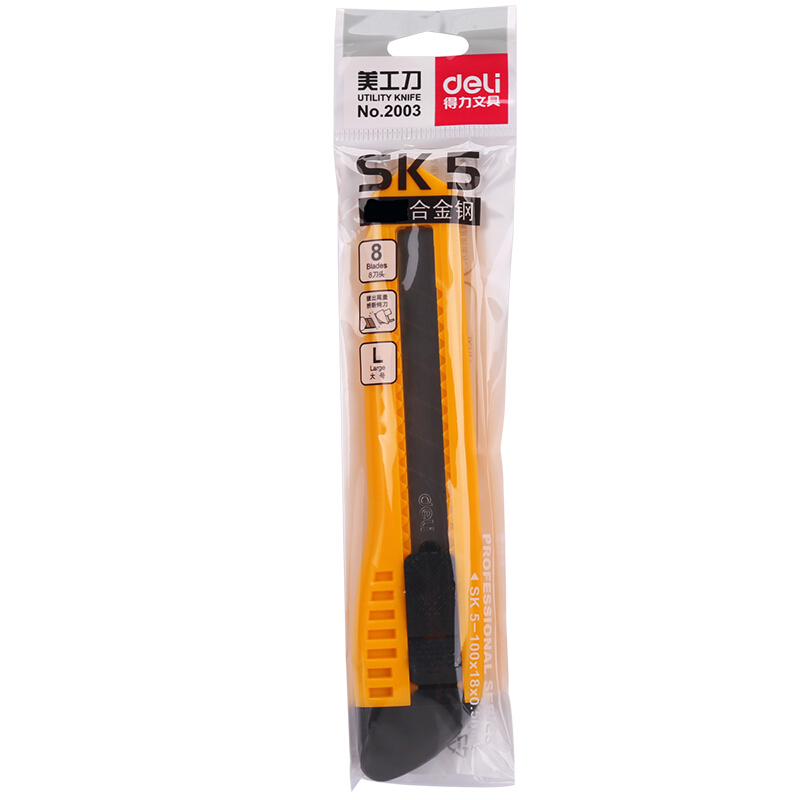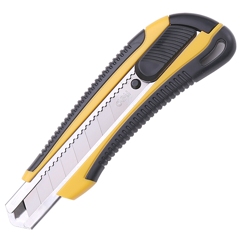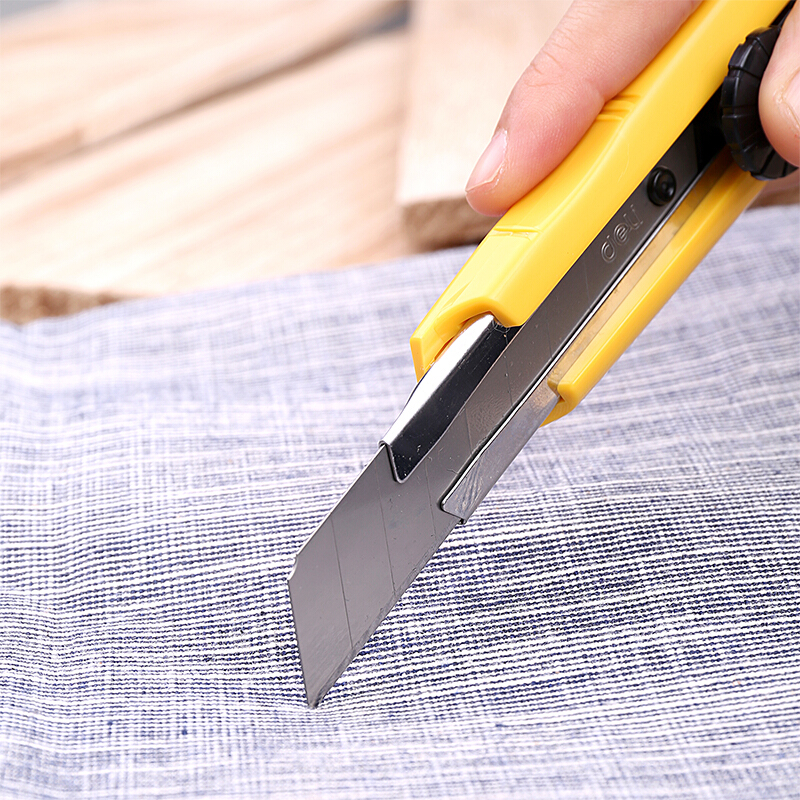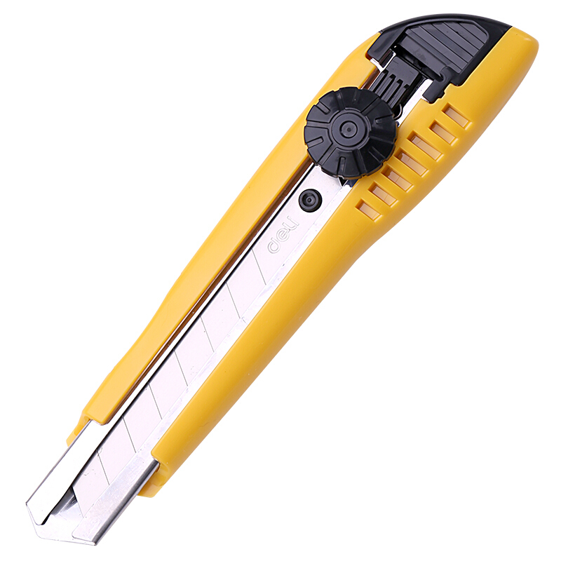 得力(deli)大号黑刃自锁美工刀/裁纸刀/壁纸刀 附赠备用刀片 锋利耐磨 黄色2041S