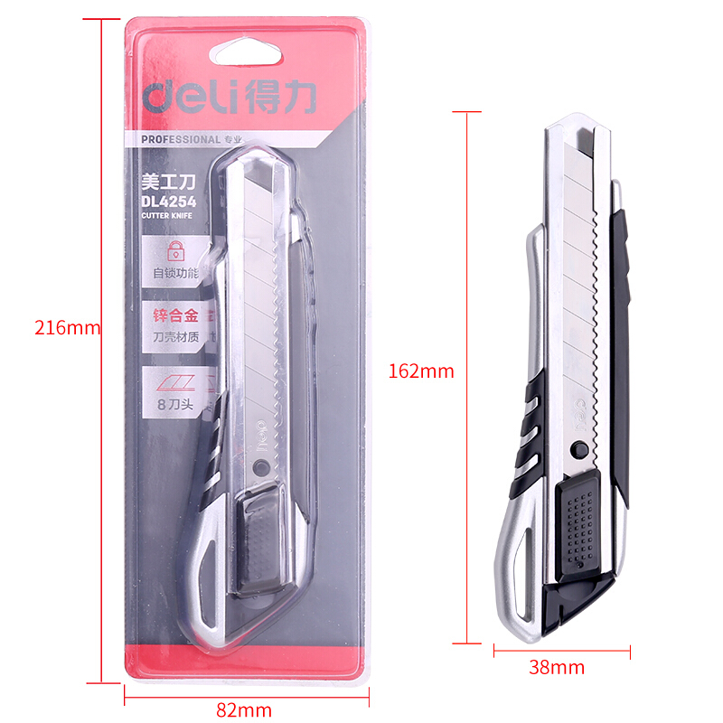 得力(deli)自锁锌合金美工刀软胶美工刀8刀头壁纸刀裁纸刀地毯刀(18mm) DL4254