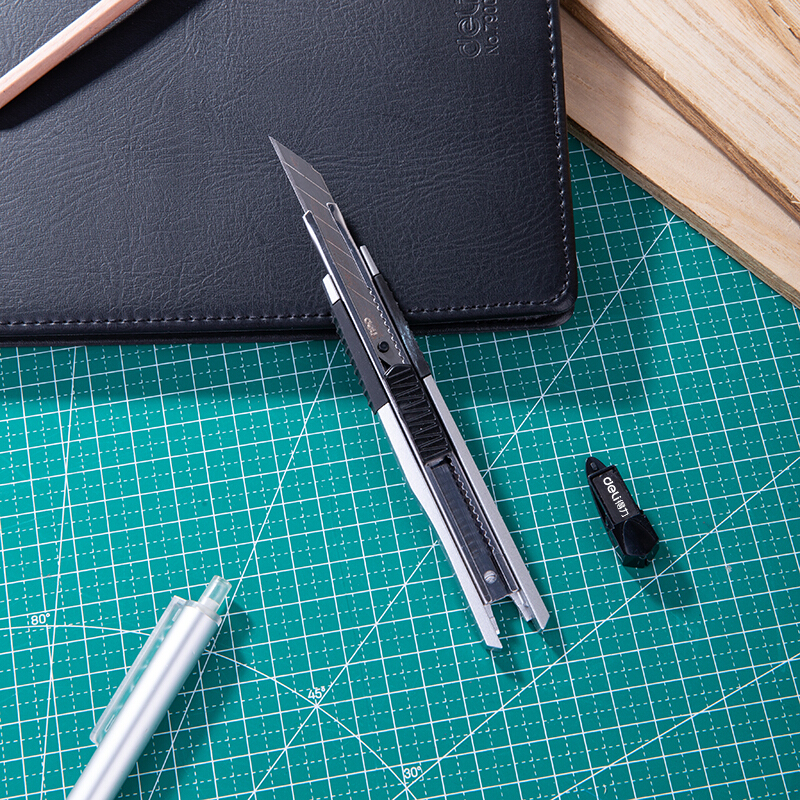 得力(deli)锌合金美工刀套装 裁纸刀1把+合金钢美工刀片1盒 办公用品 33416