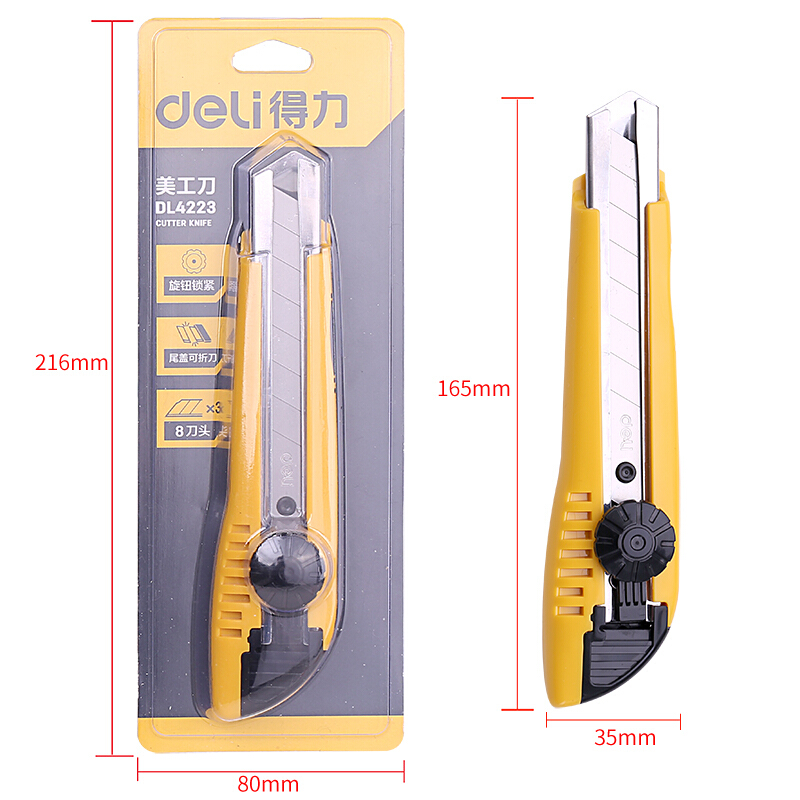 得力(deli) 旋钮美工刀壁纸刀裁纸刀地毯刀8刀头3刀片 DL4223