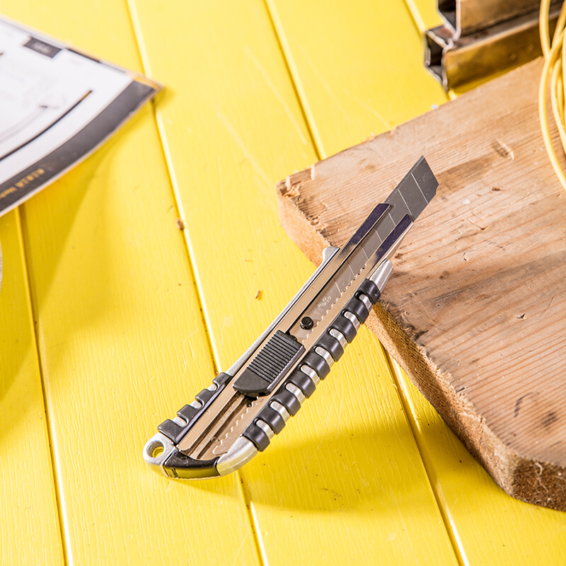 得力(deli)小号金属外壳办公家用美工刀/裁纸刀 办公用品 2053