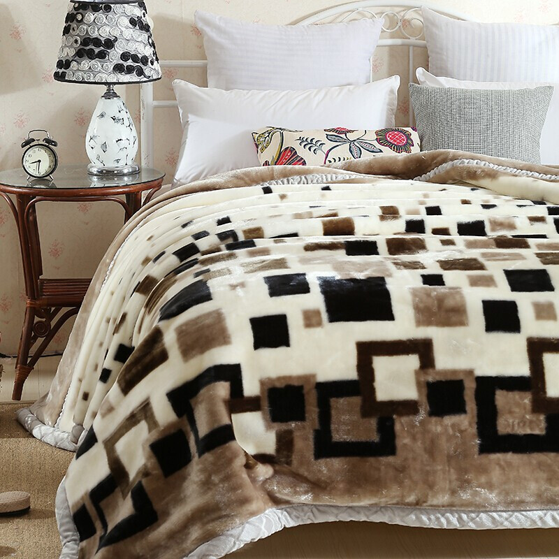 九洲鹿 毛毯家纺 双层盖毯加大加厚6.6斤拉舍尔毛毯 秋冬保暖厚毯子床单冬季盖毯空调毯 米棕格 200*230cm