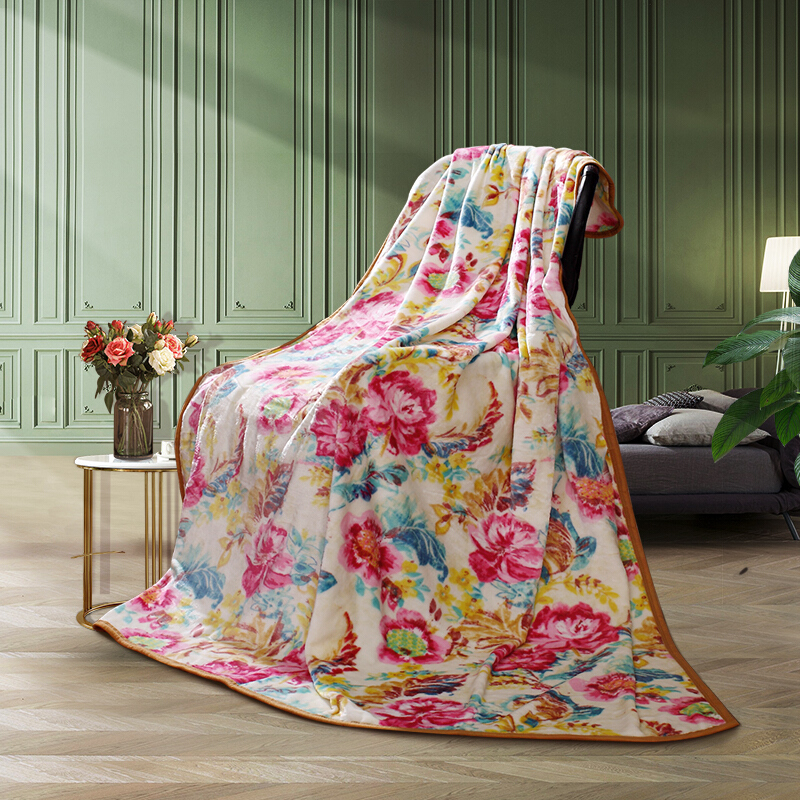 富安娜家纺 毛毯保暖毯子午睡毯四季毯子双人盖毯被 保暖床单冬天 法兰绒毯 朝花夕拾 1.8*2米 红色