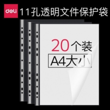 得力 (deli)5710 11孔 A4 文件袋 20个/包 透明