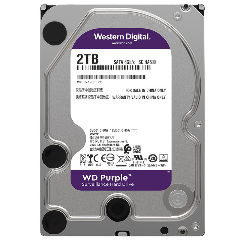 西部数据(WD)紫盘 2TB SATA6Gb/s 64M 监控硬盘(WD20EJRX)