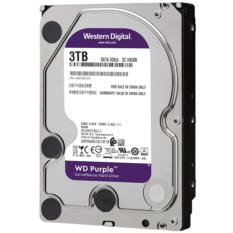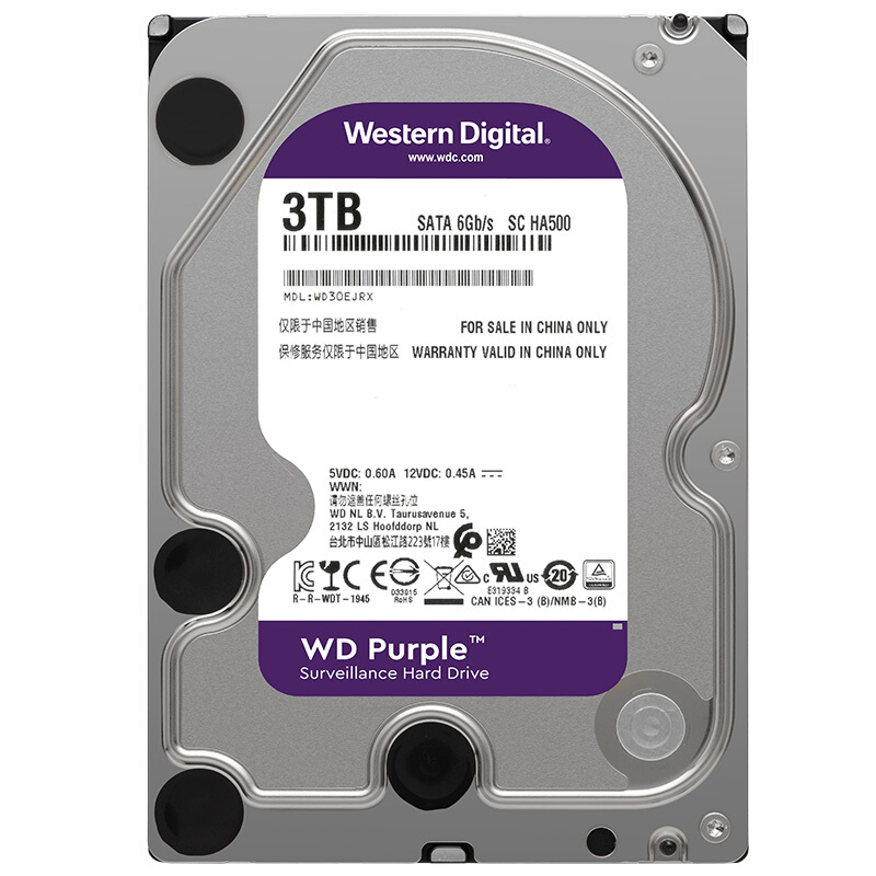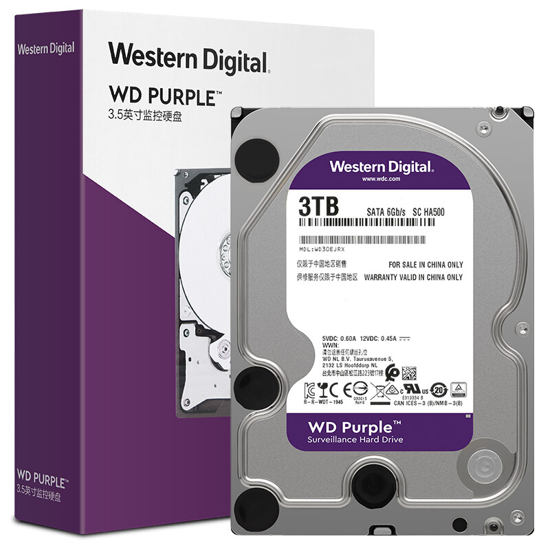 西部数据(WD)紫盘 3TB SATA6Gb/s 64M 监控硬盘(WD30EJRX)