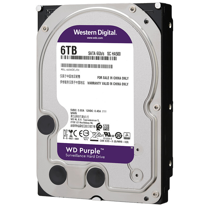 西部数据(WD)紫盘 6TB SATA6Gb/s 64M 监控硬盘(WD60EJRX)