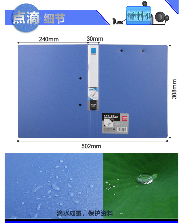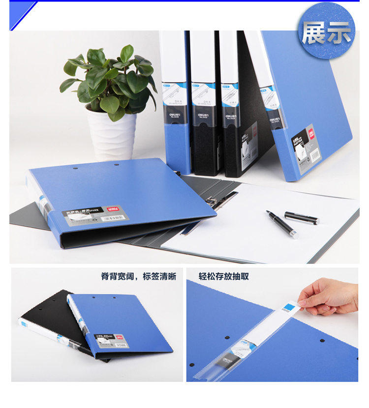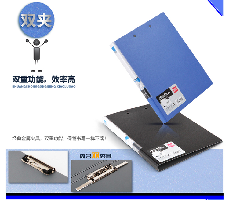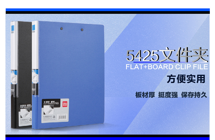 商品名称:得力(deli)5425 高档加厚PP材质资料夹 长押夹+板夹 A4单只装