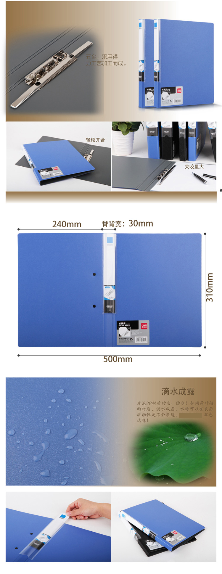- 商品名称:得力(deli)5424 加厚PP材质文件夹/长押夹 A4单只装