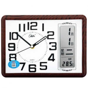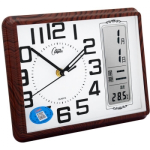 商品名称:康巴丝(COMPAS) 2991 万年历时钟现代日历温度床头钟 咖木色
