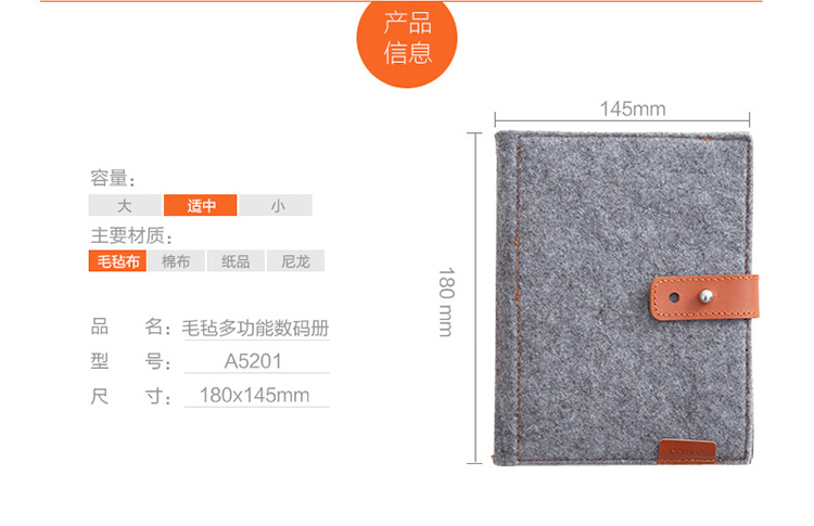 商品名称:齐心(COMIX)A5201 毛毡多面夹层 大容量收纳数码册 B6 灰