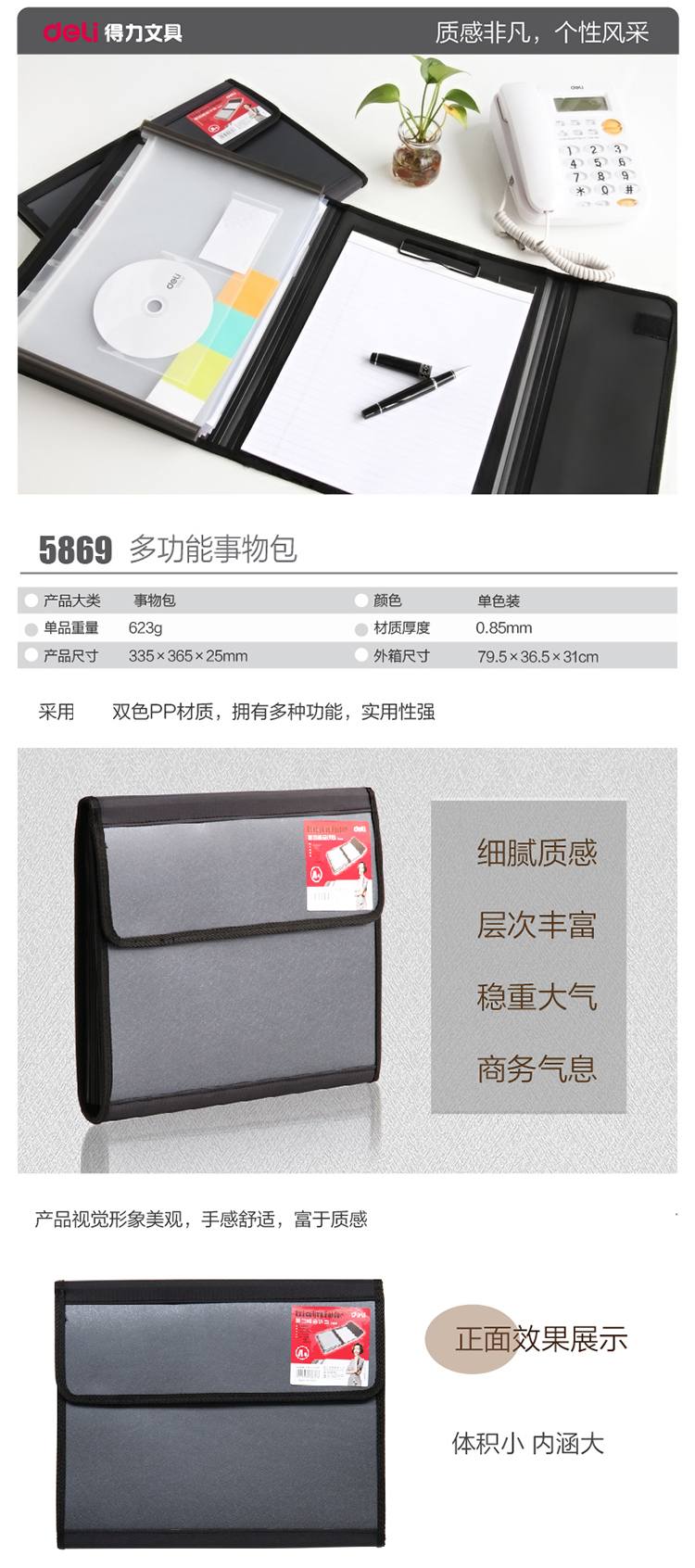 商品名称:得力(deli)5869 A4多功能事务包 颜色随机