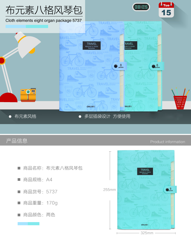 商品名称:得力(deli)5737 八格 A4 风琴包(个)