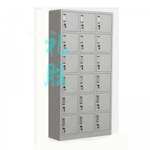 18门更衣柜、规格:1850*900*360、板材厚度0.8mm、钢材选用优质宝钢spcc国标冷轧钢板、热固性亚光粉末静电喷涂,环保无味,铝合金拉手、国标锁具。