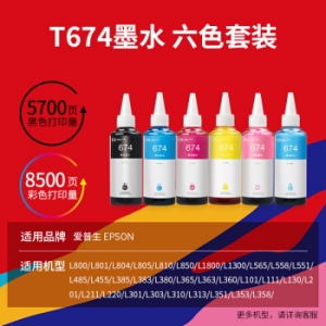 天威 674墨水 六色套装 适用L805 L850 L1800 L810 L801 L360 L101 L301 爱普生EPSON打印机 T6741-T6746墨水